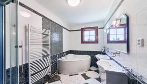 Dom disponuje 7 izbami, 3 kuchyňami, tromi kúpeľňami a 3 toaletami. V obývacej miestnosti je umiestnený nádherný keramický krb s uzatvoreným ohniskom, ktorý v zimných mesiacoch napomáha pri vykurovaní vody do radiátorov. Kúrenie je inak zabezpečené plynovým kotlom Protherm, ktorý je umiestnený v pivnici. Výplne domu, dvere a okná sú vyhotovené z dreva.